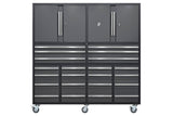 Our NEW 22-drawer Roll-around toolbox is built for professionals, boasting sturdy, industrial-strength materials, and the convenience of being able to bring along your tools wherever you need them to be in your shop. With its 22 swappable drawers, dual locking upper cabinets, you can optimize your storage while staying mobile. Available in your choice of Gunmetal Grey or Gloss Black powder-coated finishes, this locker cabinet adds a bold, cohesive look to any workspace.