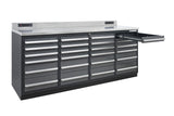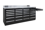 The Pro Series 24-Drawer Workbench is the ultimate solution for professionals who demand strength, flexibility, and efficiency. Featuring 24 swappable industrial-grade drawers, this workbench allows you to configure your layout exactly how you want it. Available in your choice of Gunmetal Grey or Gloss Black powder-coated finishes, this workbench combines bold style and unmatched durability.