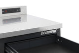 Every drawer is built from fully welded steel and reinforced with structural ribs for maximum strength and durability. Depending on the size, drawers are mounted on single or double ball-bearing slides, supporting up to 200 lbs or 400 lbs. Each drawer extends fully, giving you complete access to every inch of storage.