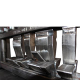 SWAG Hemming dies perform an operation in which the edges of the sheet metal are folded over another part in order to achieve a tighter fit. This product includes precise laser cut pieces of 1/2" plate that can be stacked in a line or welded together to suit your application. The kit consists of 32 individual pieces that when fully assembled forms an 8" long Hemming die. Typical Hemming operations are used to connect parts together, to improve the appearance of the part and to reinforce edges.