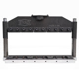 One of the standout features of this updated design is the integrated A572 bottom tray, which doubles as its own arbor plate. This means you'll no longer need additional support when using it in most hydraulic presses. The integrated bottom tray measures 21-7/8" x 8-1/4" for incredible stability in a wide variety of shop presses. Though the PRO Brake was designed to fit in most 20 Ton shop presses, it works great in most larger presses as well Additionally, the newly designed, taller fingers allow for deeper box and pan formations, giving you more options for your metal fabrication projects.